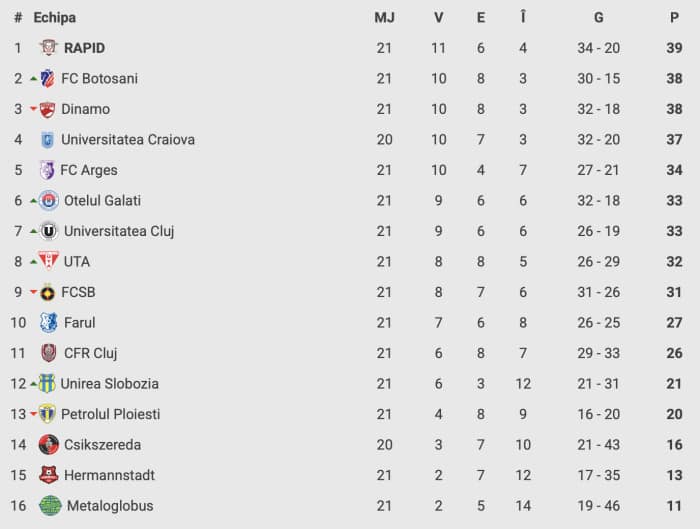 Clasamentul din SuperLigă. FCSB, la 8 puncte de Mercurial