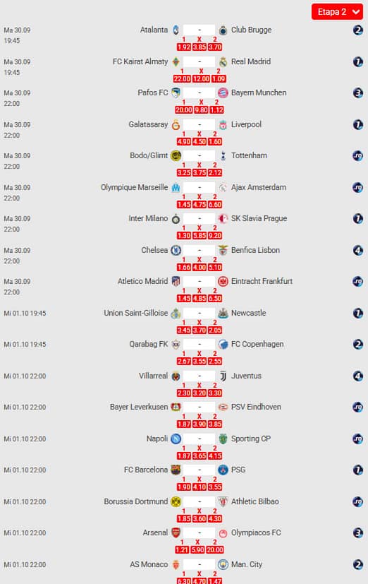 Programul zilei de marți, 30 septembrie, din UEFA Champions League