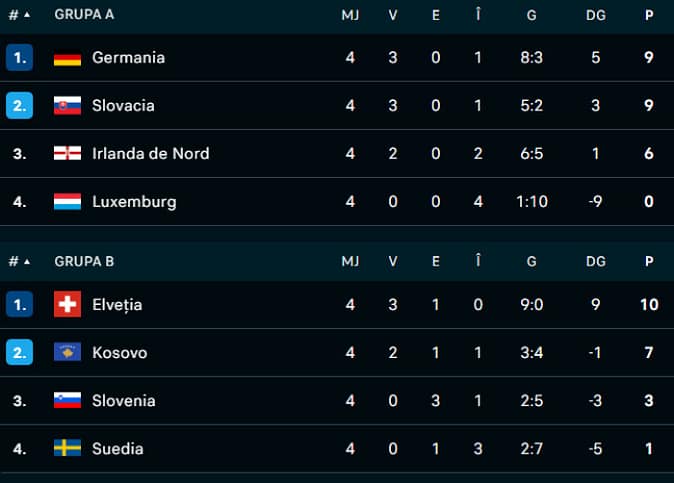 - Germania: Baumann – Raum, Schlotterbeck, Tah, Kimmich – Goretzka, Pavlovic, Adeyemi, Gnabry, Wirtz – Woltemade